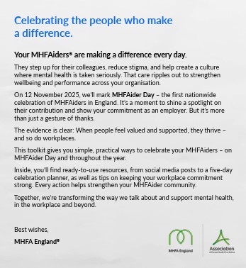 - Encourage MHFAiders to share their story – one conversation that mattered or why they become a MHFAider, either internally or on Linkedin